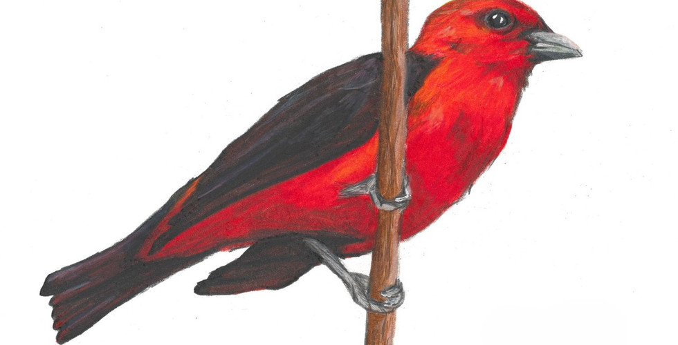 After I left for college, my mom continued making an annual trip up to the festival, typically on Mother's Day as an excuse to invite my siblings along. This is the first year that I have been back in Ohio for May, so I joined them for the first time on the annual Mother's Day trip. Every year my mother especially wants to see a Scarlet Tanager, so I drew her the one that we all saw together this year.